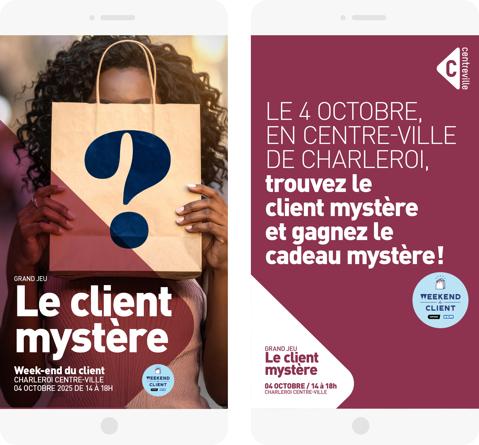 Le samedi 4 octobre, à l’occasion du week-end du client, le centre-ville de Charleroi va devenir le terrain de jeu d’un personnage secret qui se balade incognito, entre deux vitrines et trois cappuccinos. Votre mission (si vous l’acceptez) : le retrouver. Mais attention… il n’est pas seul. Une armée de faux clients, déguisés et armés de sacs de shopping, seront là pour semer la zizanie.